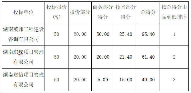 衡陽糧油科技產業園系列建設項目招標代理機構比選為國內公開招標,于2024年02月26日15:00時整在湖南益佳項目管理有限公司進行了開標、評標,本項目評標辦法采用綜合評分法。評標委員會推薦了以下3名中標候選人(排序),現將相關信息予以公示。